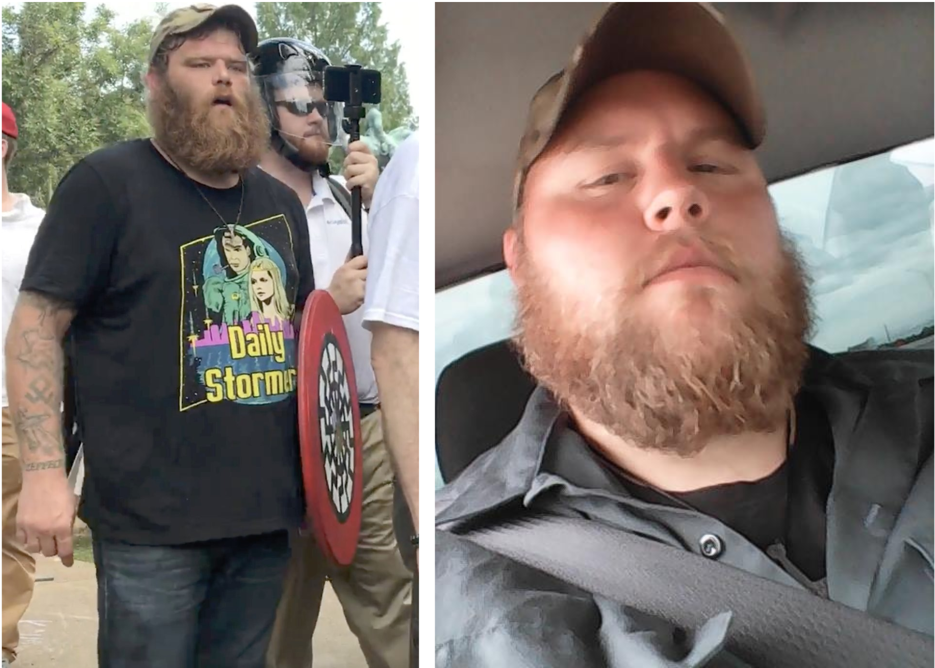 William "Billy" Williams and Wil Zachary Smith* are big bearded redheads from the tiny north Texas town of Nocona. With their similar names, red beards, large frames, and hailing from the same small town, the pair can be hard to tell apart. For those of us having trouble, Azzmador gave a straight to camera interview on the morning of August 12, 2017 introducing his security team, calling Billy and Wil "Texan" and "Hammer," respectively. And, in a second stroke of luck, Azzmador confesses to a felony in the same one minute clip.